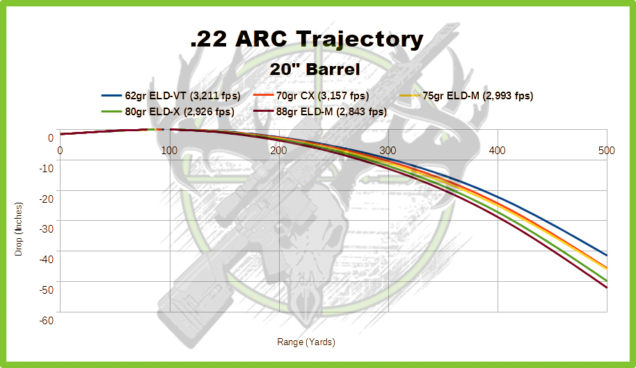 - The advantage grows beyond 600 yards. The 22 ARC 88 gr ELD-M still exceeds supersonic speed past 1,200 yards in most conditions and delivers .22-250-level energy at 700–800 yards.